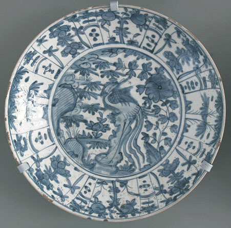 | Nederlands | Schotel met decor van feniks op rots temidden van vegetatie, Swatow |