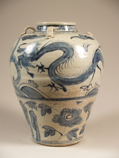 Pot met 4 handvatten met decor van draken (Nederlands)