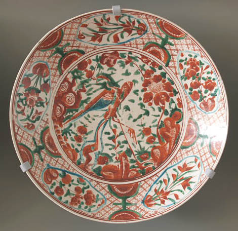 | Nederlands | Schotel met decor van feniks omgeven door bloeiende ranken, Zhangzhou (Swatow) |