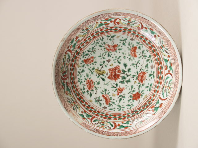 Schaal met decor van bloemen en 3 verschillende randdecoraties (Nederlands)