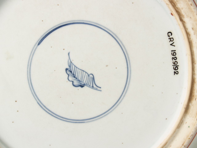 in kobaltblauw op de bodem: blad in dubbele ring (Nederlands)