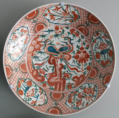 | Nederlands | Schotel met decor van 2 feniksen temidden van bloemranken |