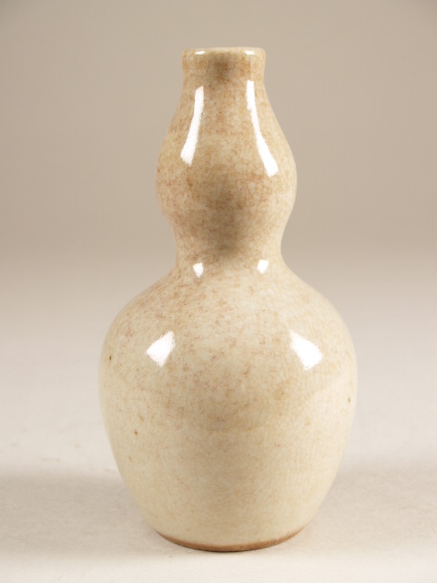 Knobbelfles, voorzien van gecraqueleerd crèmekleurig glazuur (Nederlands)