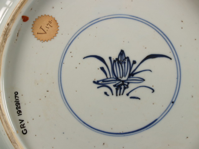in kobaltblauw onder op de bodem:; lotus in dubbele ring (Nederlands)