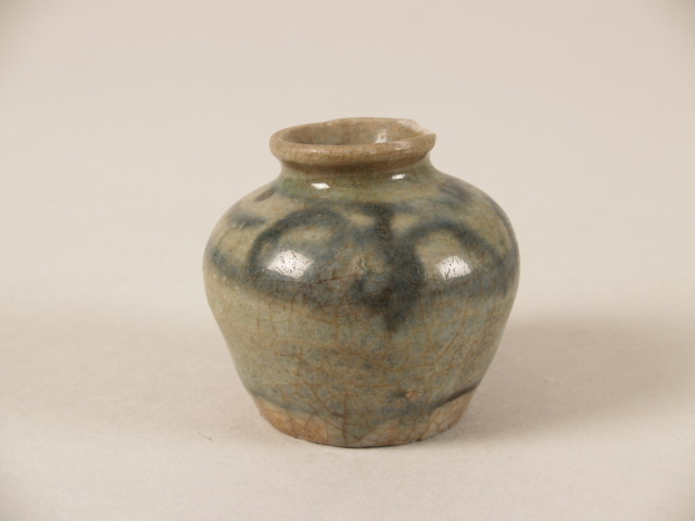 Potje met decor van gestileerde blauwe motieven (Q25977)