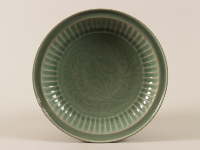 Schaal met floraal en radiaal decor, celadon (Nederlands)