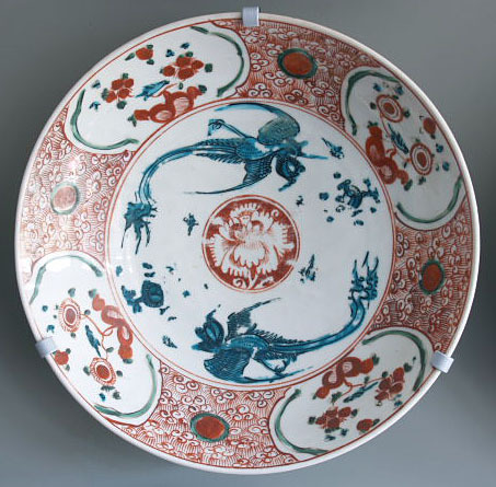 | Nederlands | Schotel met decor van medaillon waarin een bloem omgeven door 2 feniksen, Swatow |