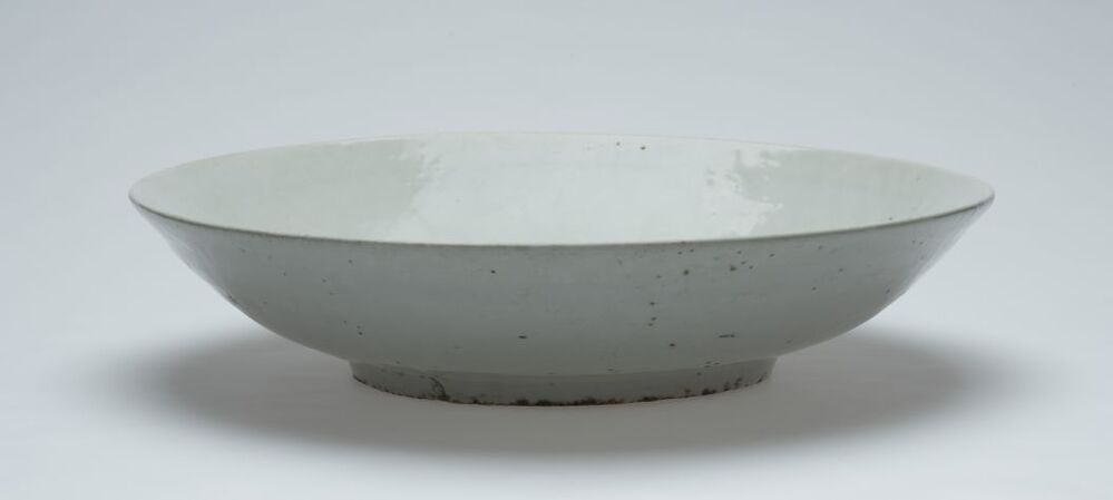 Schaal met licht convexe bodem, trapezoidale voetring. Bol, later vrijwel recht spreidende wand. (Nederlands)