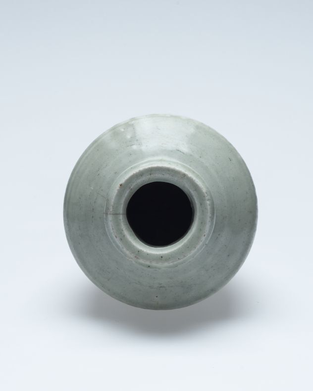 Pot met concave voet, schijnvoetring. Bolspreidende wand, scherp knikkende, dan bijna recht verjongende schouder, korte rand, dikke lip.||China||Keramiekmuseum Princessehof GRV 1929-413 |