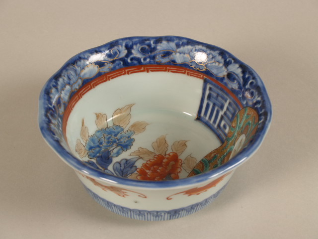 Kom met golvend randdecor van bloemen en vleermuizen (Nederlands)