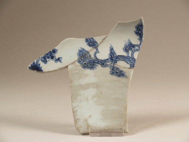 Scherf van schaal met decor in onderglazuurblauw van pijnboom (Q26058)
