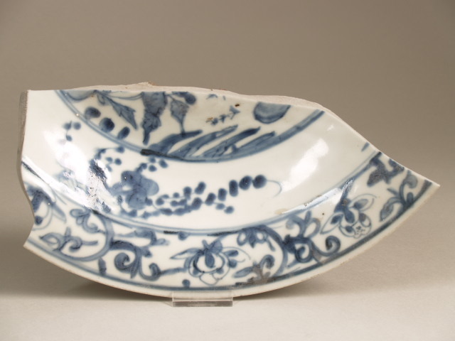 | Nederlands | Scherf van schaal met decor van bloeiende planten, Swatow |
