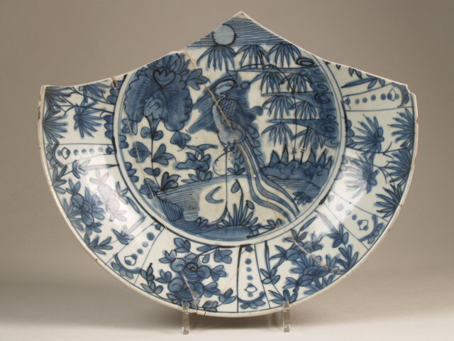 | Nederlands | Scherf van schaal met decor van feniks op het plat, Swatow |