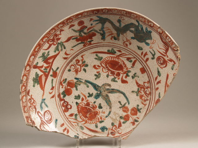 | Nederlands | Scherf van een schaal met decor van feniks, bloemen en draak, Swatow |