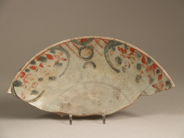 Scherf van schaal, uit 2 stukken, met polychroom decor van bloeiende planten, Swatow (Nederlands)