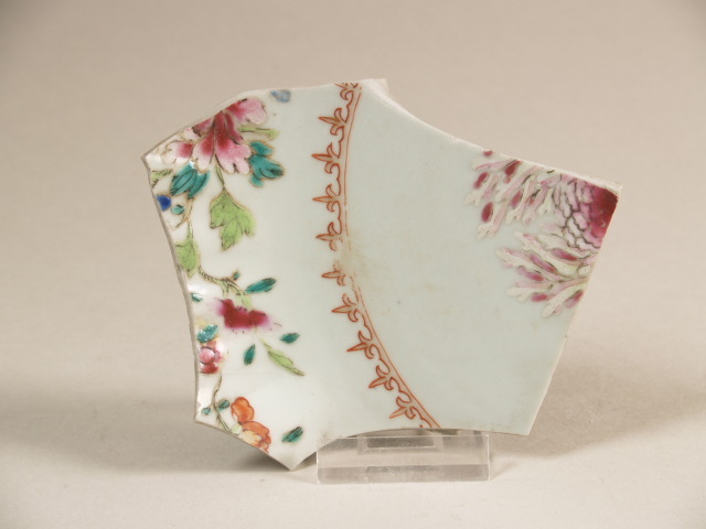 Scherf van schaal met decor van bloemen, famille rose (Nederlands)