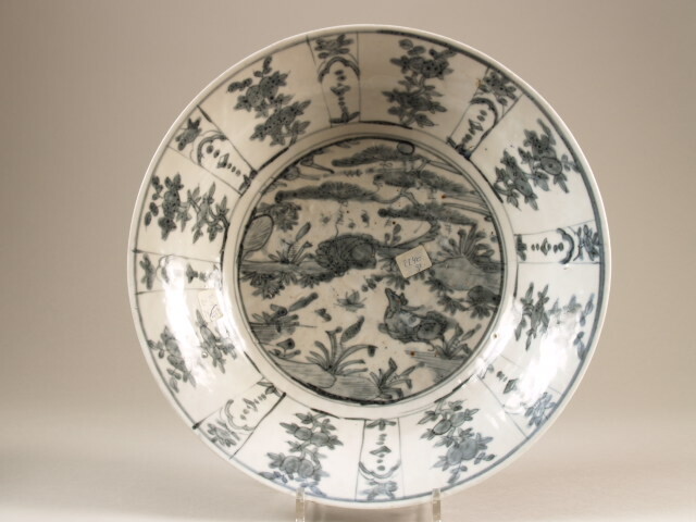 | Nederlands | Schotel met decor van 2 herten in landschap, Swatow |