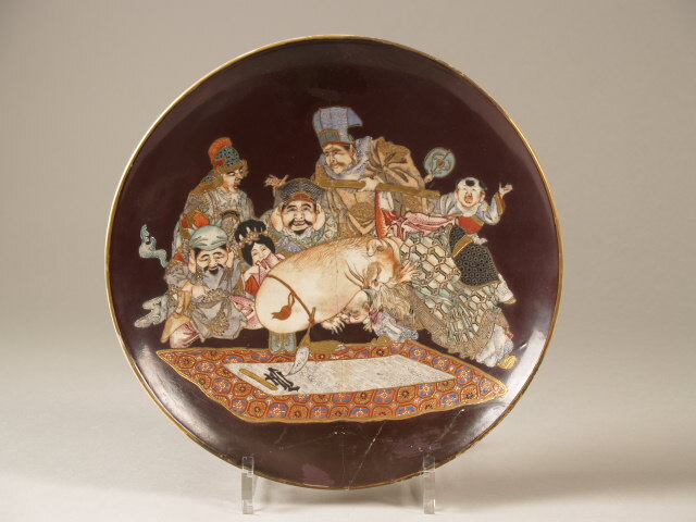Bord met polychroom decor van Laotse en onsterfelijken (Nederlands)