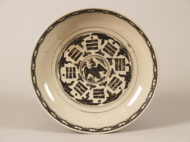 Schaal met decor van bagua of de Acht trigrammen en centraal een kraanvogel (Q26149)