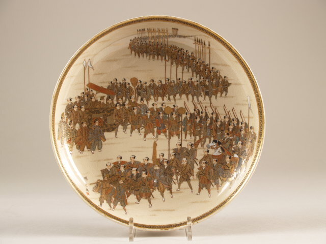 Bord met decor van lange praalstoet, satsuma (Nederlands)