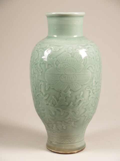 Vaas met florale decoratie in reliëf, bedekt met celadon (Q26209)