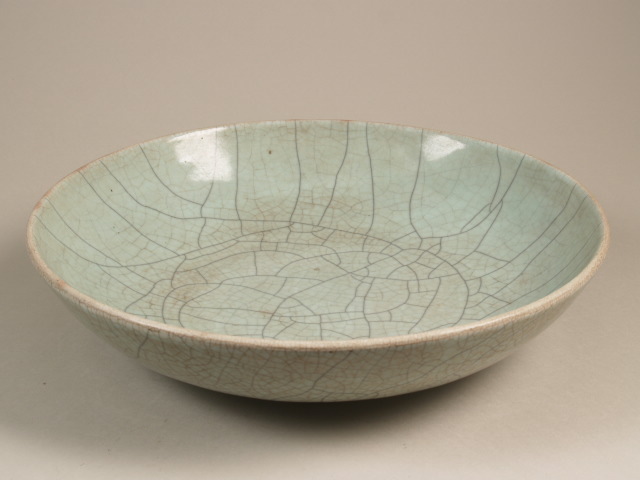 | Nederlands | Schaal met zwaar gecraqueleerd celadon glazuur, de ongeglazuurde bodem ongeglazuurd |