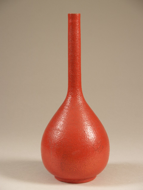Vaas met lange hals en oranje-rood glazuur (Nederlands)