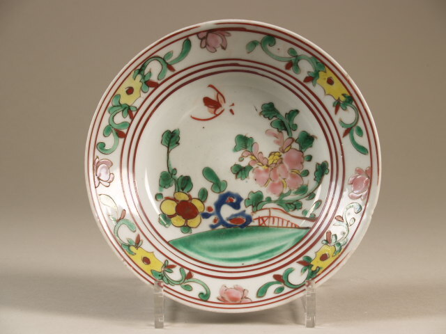 Bord met decor van bloemen en rotspartijen in tuinlandschap (Nederlands)