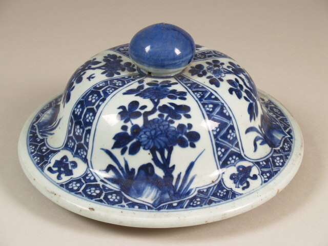 Deksel met knop en decor van vakken waarin bloemen (Nederlands)