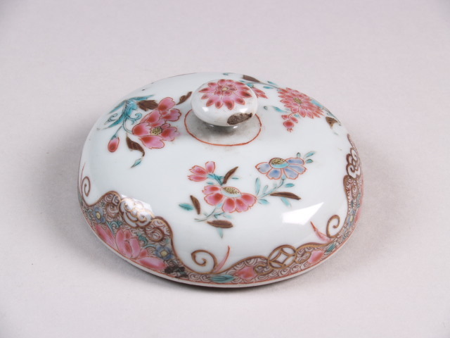 Deksel, rond, met decor van bloemen, famille rose (Nederlands)