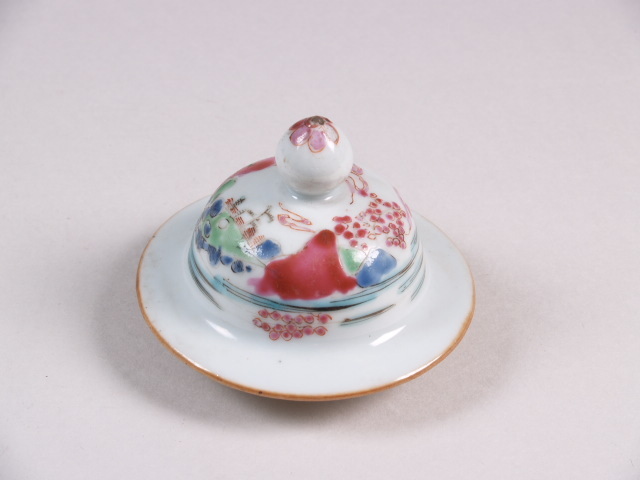 Deksel, rond, met decor van bloemen, famille rose (Nederlands)
