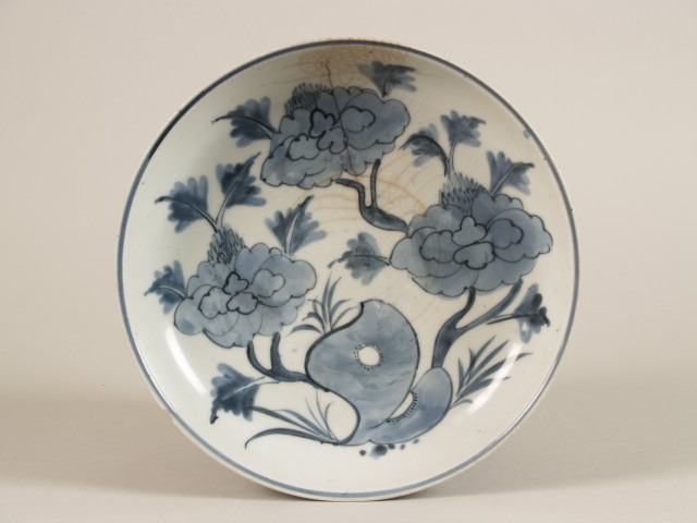Schaal met decor van bloemen groeiend uit rotswerk (Q26348)