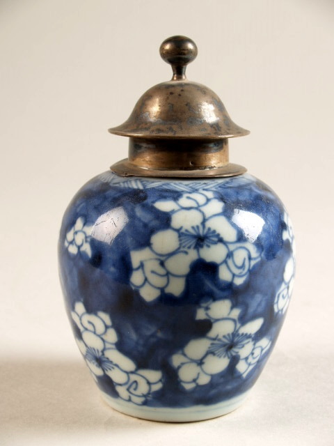 Miniatuurpot met zilveren deksel met decor van craqued ice-motief (Q26377)