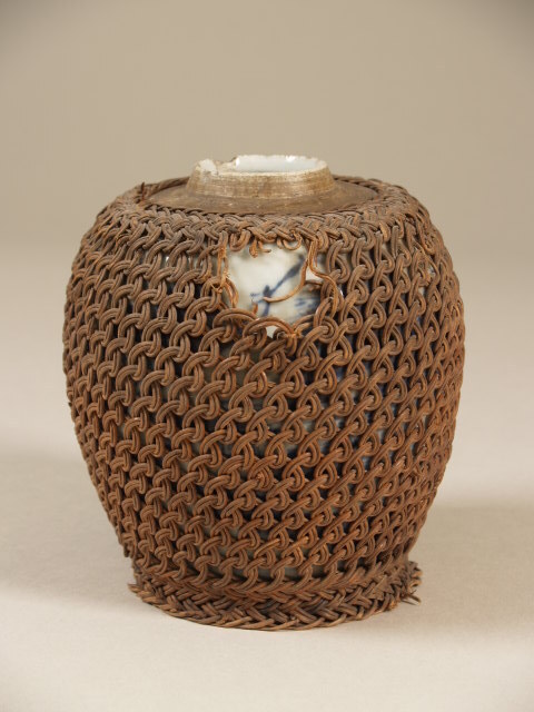 Pot zonder deksel, strak omvlochten met Indonesisch riet (Q26396)