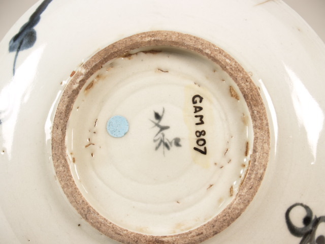 Bord beschilderd in onderglazuur blauw dat gedeeltelijk grijs is uitgeslagen. Op het plat een decor dat doorloopt op de wand van kalligrafie met daaronder een vogel zittend op een tak. Aan weerszijden van de tak twee bladranken. Op de achterzijde van de wand staan bladranken en op de bodem een merk/signatuur. (Nederlands)