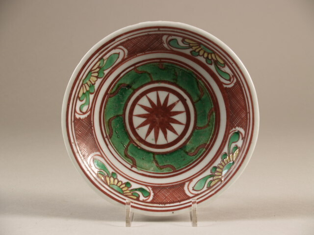 Bord met polychroom decor van biezen en cartouches en in het centrum een ster (Nederlands)