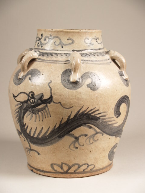 Voorraadpot met 6 oren en decor van draken (Nederlands)