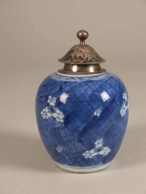 Pot met zilveren deksel met decor van 'cracked ice'-decoratie (Nederlands)
