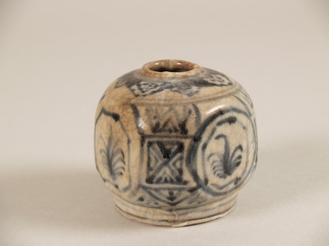 Pot met decor van 4 panelen waarin bloemen omgeven door geometrische motieven (Nederlands)