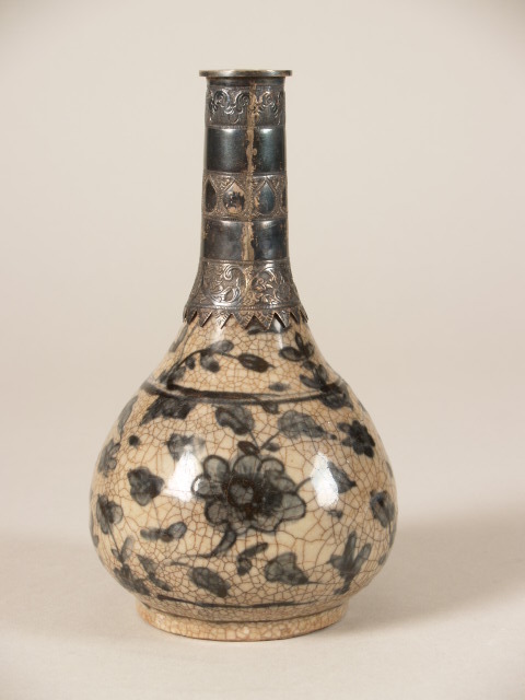 Vaas met zilveren montuur en decor van bloemranken (Nederlands)