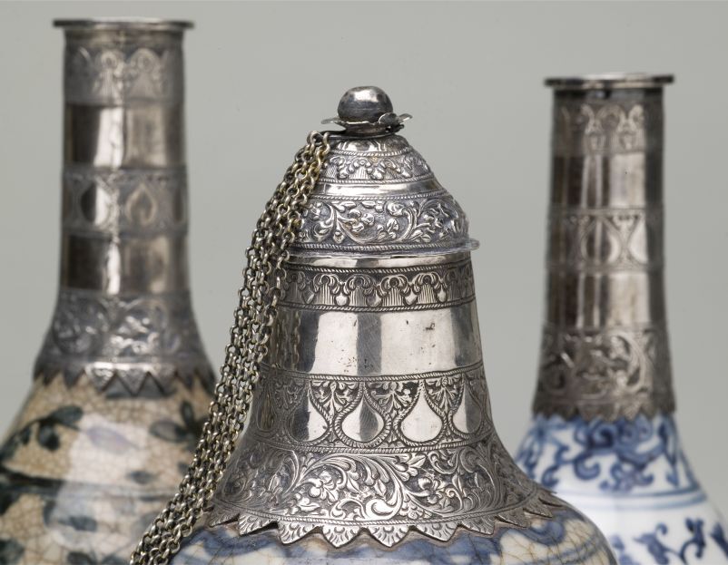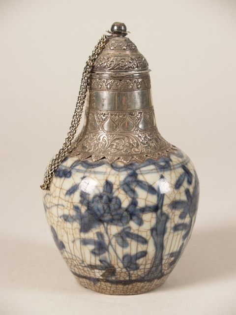 Pot met zilveren montuur en met decor van bloemtakken (Nederlands)