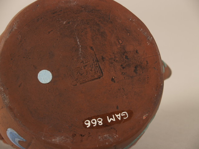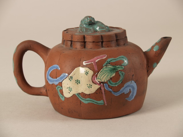 Theepot met decor van boeddhistische leeuw in emailkleuren (Nederlands)