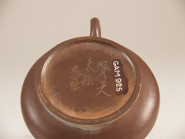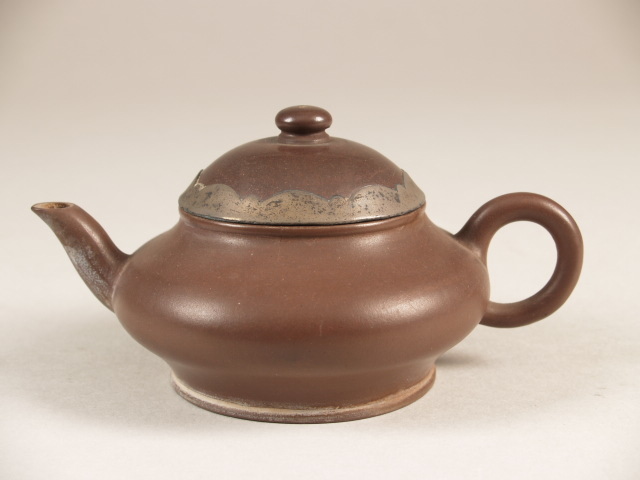Theepot met zilveren montuur. Aan de binnenkant lijken resten van roest te zitten, mogelijk heeft hier ook een metalen montuur gezeten? Op de onderkant zit een inscriptie die qua stijl te dateren is op de 19de eeuw. De theepot is vrij gepolijst, dit was met name in trek in Thailand. Mogelijk is dit dus een model gemaakt voor de Thaise markt. (Nederlands)