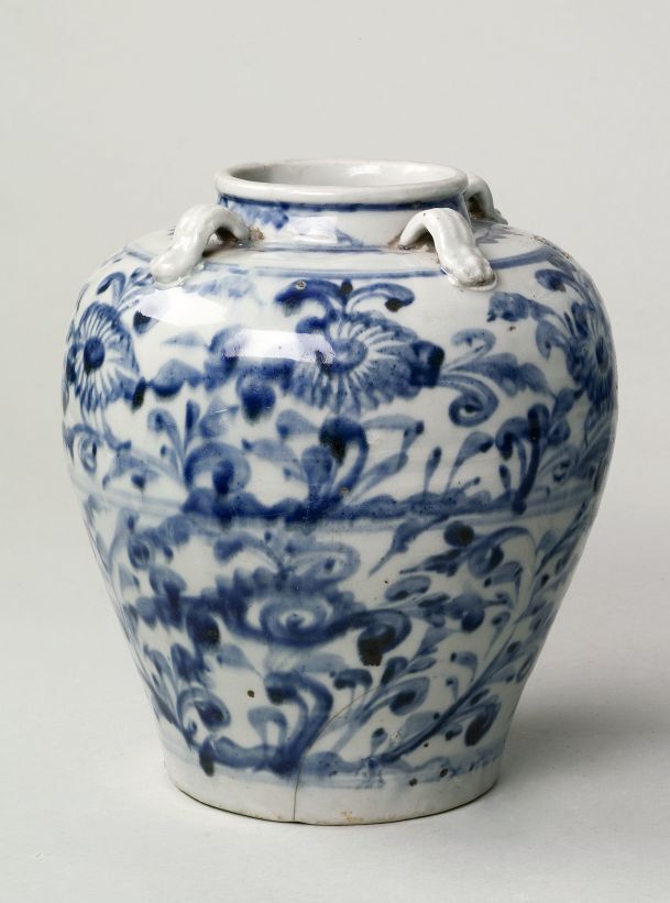 Voorraadpot met handvatten en decor van bloemen en planten (Nederlands)