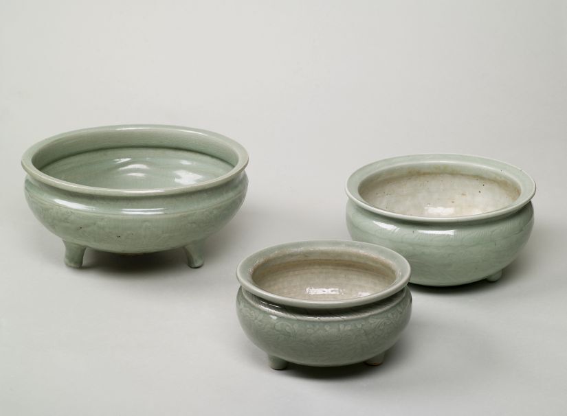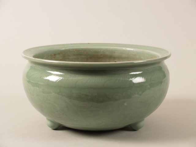 Wierookbrander met decor van ingesneden bloemen, celadon (Q26662)
