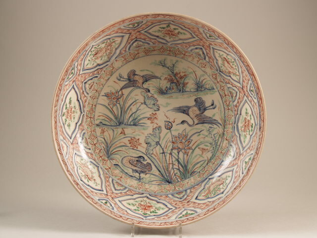 | Nederlands | Schotel met decor van eenden in een lotusvijver, omgeven door cartouches, polychroom |