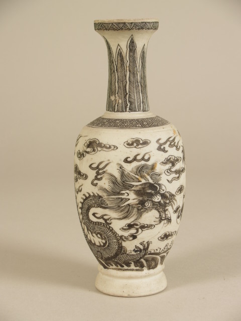 Vaas, biscuit, met decor van vijftenige draken en wolken in zwart gebrand kobalt (Q26737)