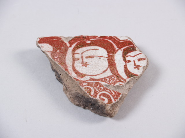 Scherf met decor van 2 gezichten met Mongoolse trekken (Nederlands)