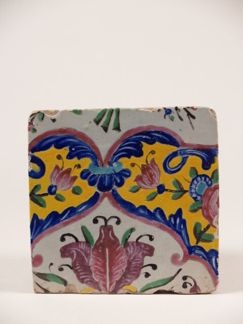 Tegel met polychroom decor van florale motieven (Nederlands)