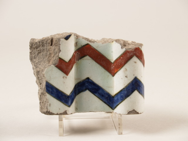 Bouwkeramiek met decor van bruin, blauw zigzag motief, Osmanen-dynastie (Nederlands)